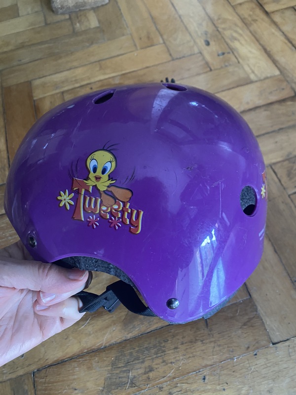 Regalo un casco de niño/a de color morado, con dibujo de Piolin. A recoger en Alcorcon, cerca metro Joaquin Vilumbrales