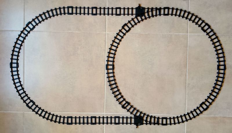 32 milímetros entre la cara interna del carril derecho y la del izquierdo. Para trenes de pilas de esas dimensiones. Circuito completo, configurable de varias formas. En la foto se muestra una. Con dos cambios de agujas. Recogida zona metro Estrecho. Me pongo primero en contacto (por WhatsApp) con las personas que me dejan su número.